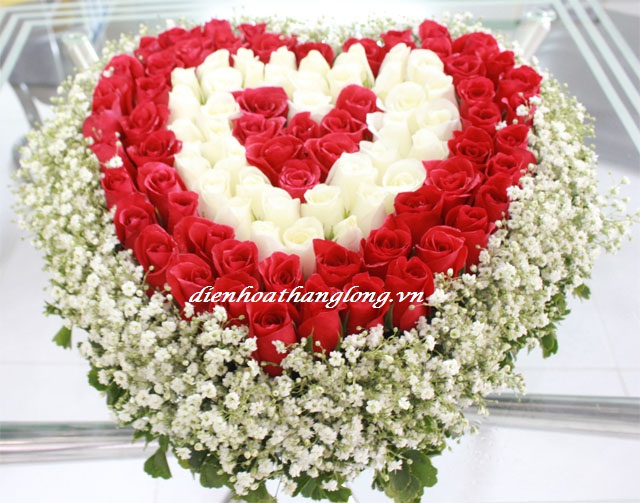 Sản phẩm gồm 99 bông hồng đỏ và trắng