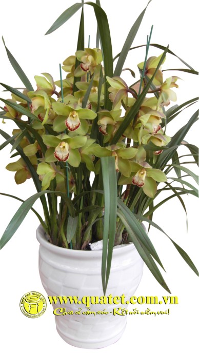Chậu hoa bao gồm 9 cây địa lan xanh. Giá trên đã bao gồm chậu sứ cao cấp